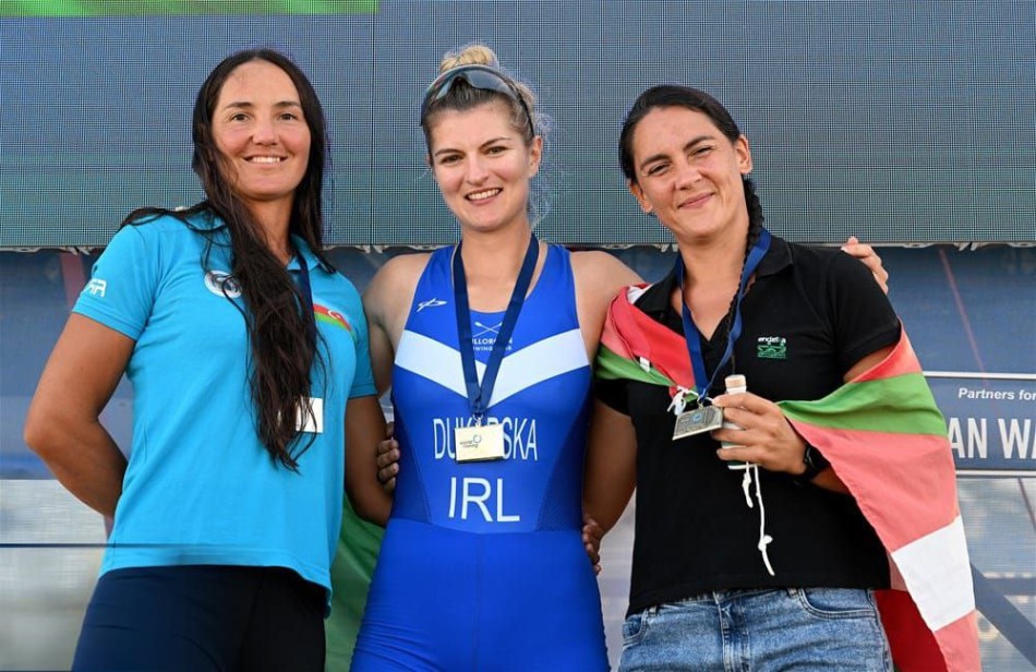 İtaliyanın Barletta şəhərində keçirilən sahil avarçəkməsi üzrə dünya çempionatında Azərbaycan yığma komandasının üzvü Diana Dımçenko 6000 metr məsafəni 32:20.94 dəqiqəyə qət edərək gümüş medal qazanıb.